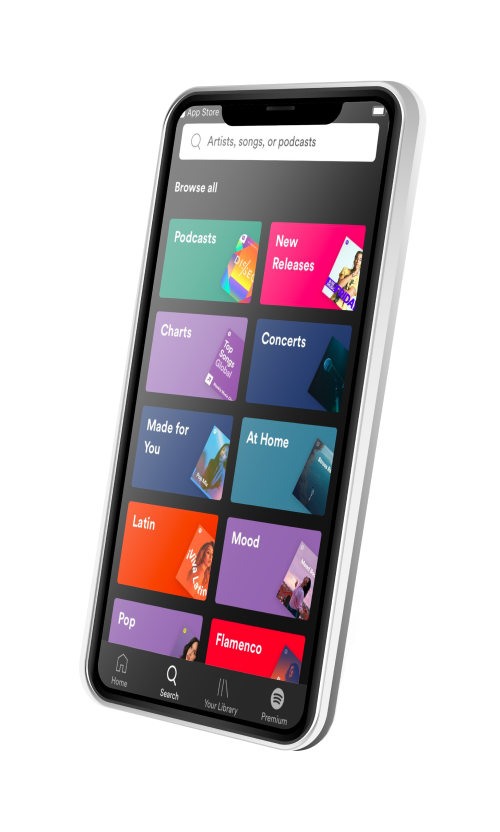 Format publicitaire de 30 secondes max non skippable inséré entre les titres avec un bouton de redirection vers votre site internet.